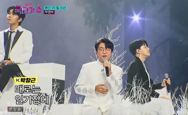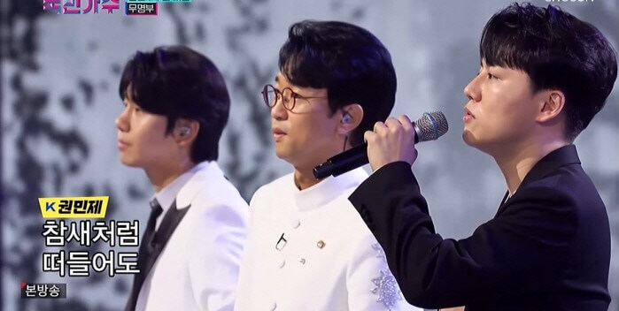 다음으로 국민가수 박창근은 자신의 팀인 무명부에서 참가자 박장현, 권민제와 함께 <이선희의 알고 싶어요>라는 곡을 불렀습니다. 이 당시 국민가수 박창근이 무명가수인가?라는 생각이 들 정도로 국민가수 박창근은 물론 이 세 사람이 정말 아름다운 무대를 보여줬습니다.