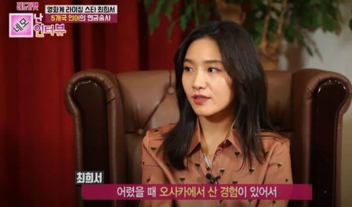그리고 최희서는 어린 시절 일본, 미국에서 살았고 미국 거주 당시 제2의 외국어로 이탈리아어를 선택해 배웠고 중국어 또한 언젠가 진출하고 싶어 배웠다고 합니다. 그래서 최희서 영어는 물론 일어, 중국어, 이탈리아어 등 5개 국어가 가능하다고 합니다.