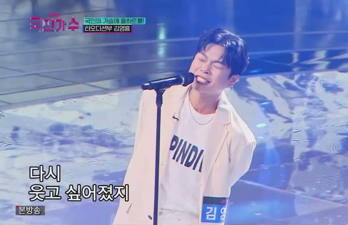 국민가수의 규칙상 출연자들은 자신의 소속인 부서로 출연해야 하는데요, 국민가수 김영흠은 다양한 오디션을 출연한 경력이 있으므로 국민가수 김영흠은 타 오디션부로 오디션을 보게 되었습니다.